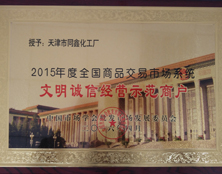 同新獲得全國文明誠信經營經營示范商戶稱號